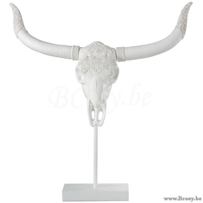 Jline Schedel Hert Op Voet Polyresine Wit