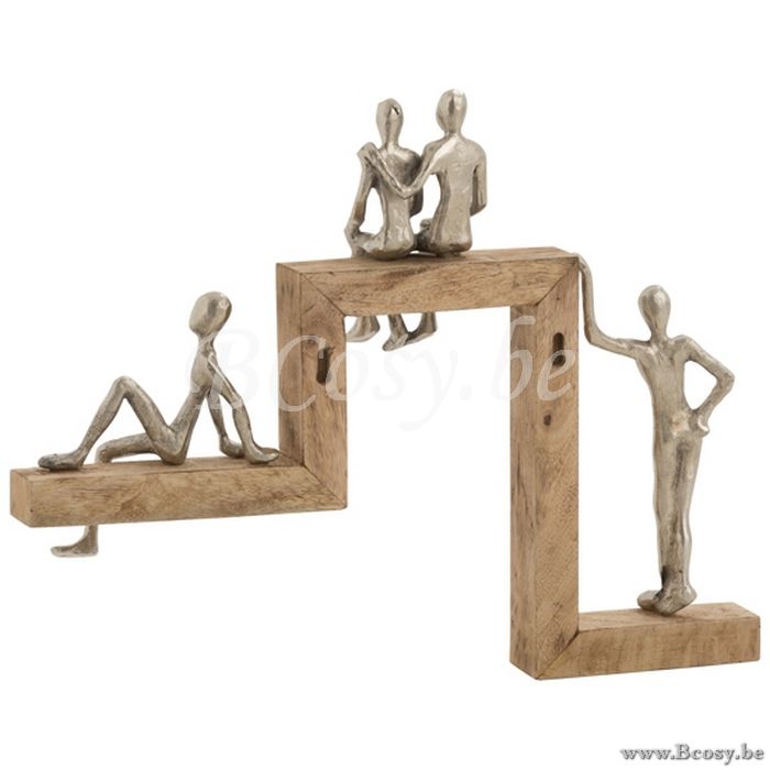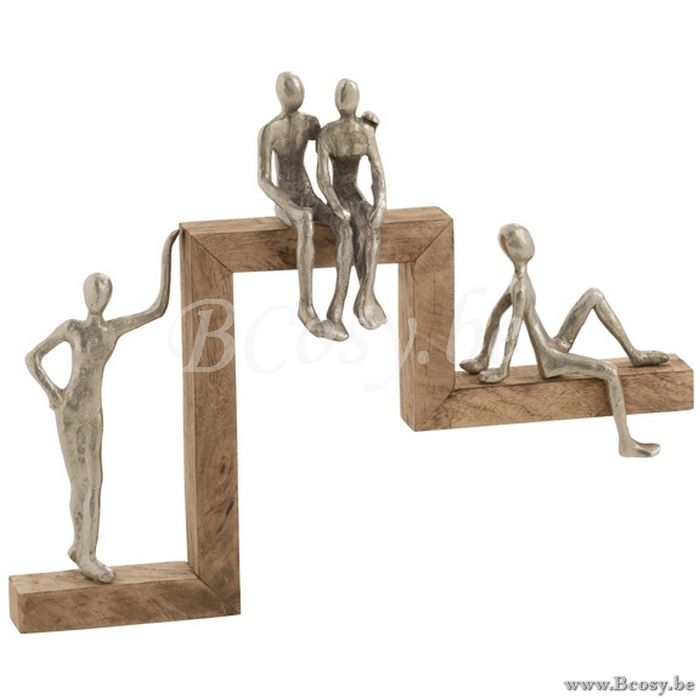 Jline Figuren 4 Relax Trap Aluminium Mango Hout Zilver Naturel