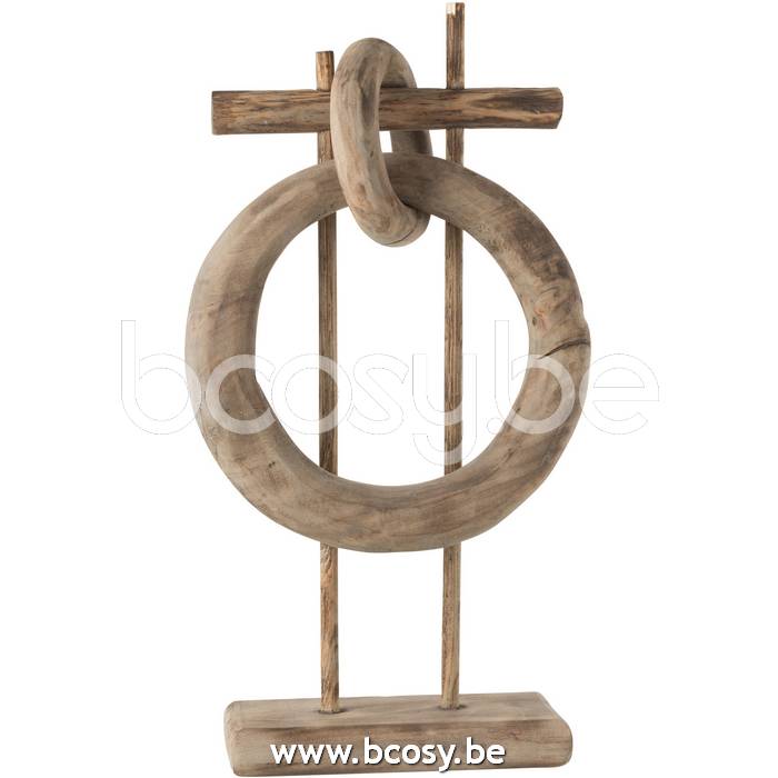 J-Line Decoratie Ringen Verticaal Hout Naturel L34xB18xH68 cm