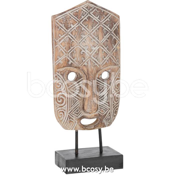 Jline Figuur Masker Primitief Op Voet Alabasia Hout Bruin Wit Small