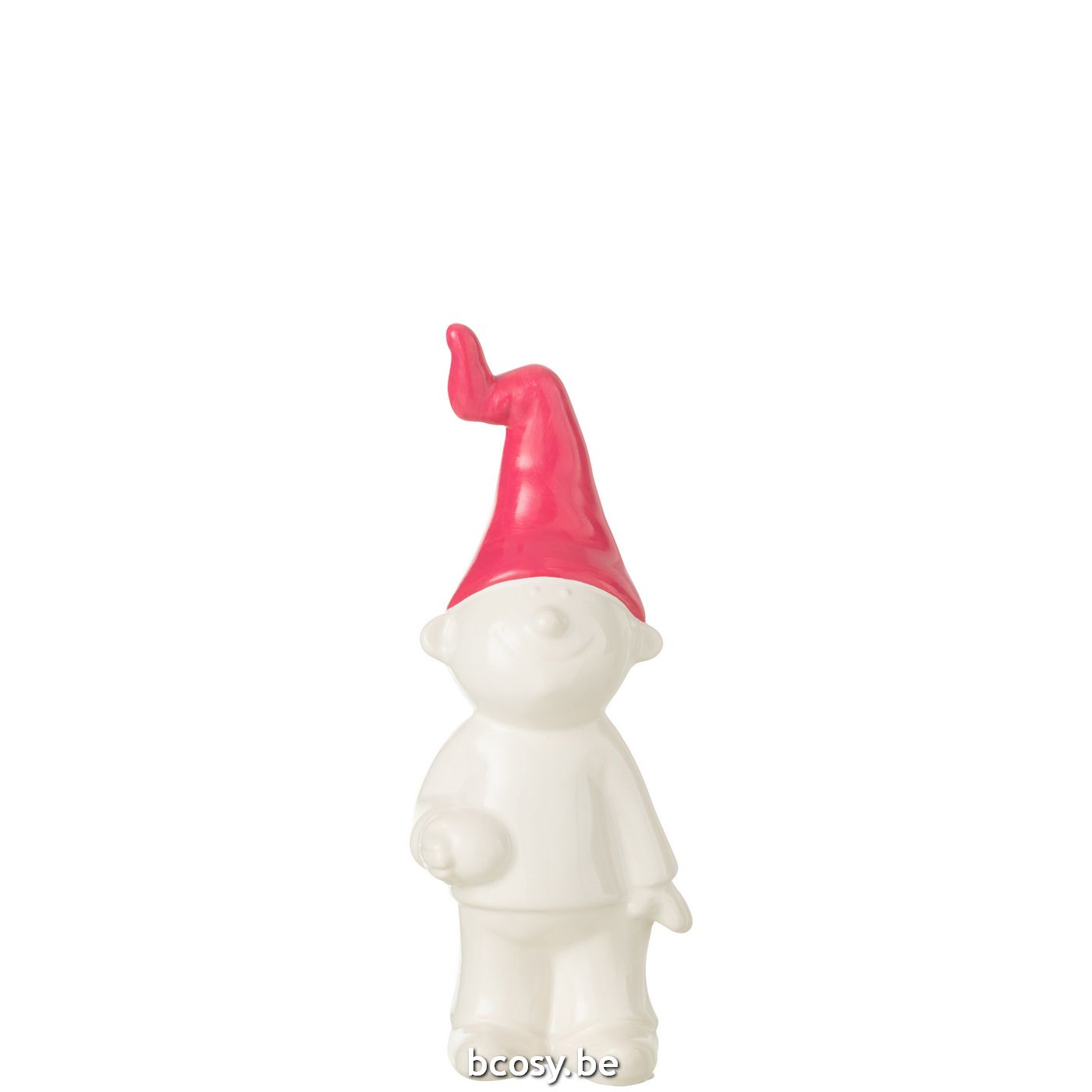 Jline Kabouter Staand Keramiek Wit Fuschia Small