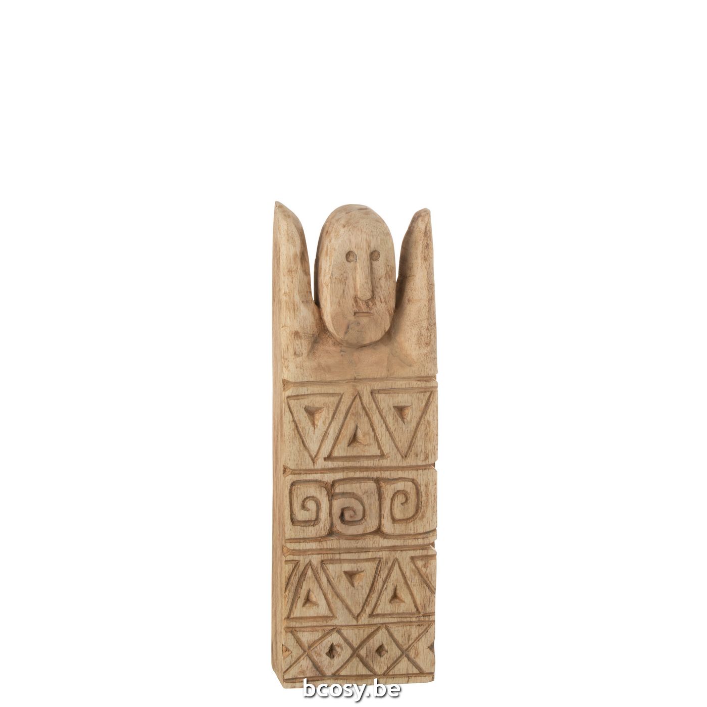 J-Line Afrikaans Gerkefd Figuur Happy Hout Naturel L16xB7xH46 cm