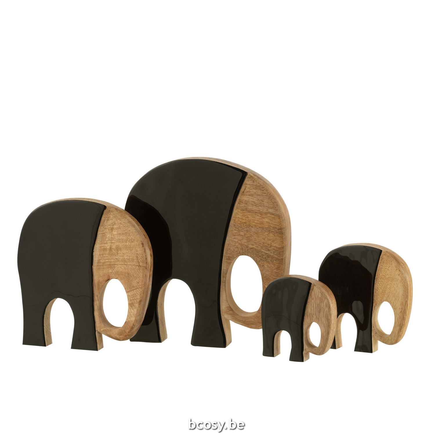 Jline Set Van Vier Olifanten Mangohout Zwart Donkerbruin