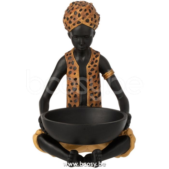 J-Line Jongen Zittend Poly Zwart-Bruin L20xB18xH26