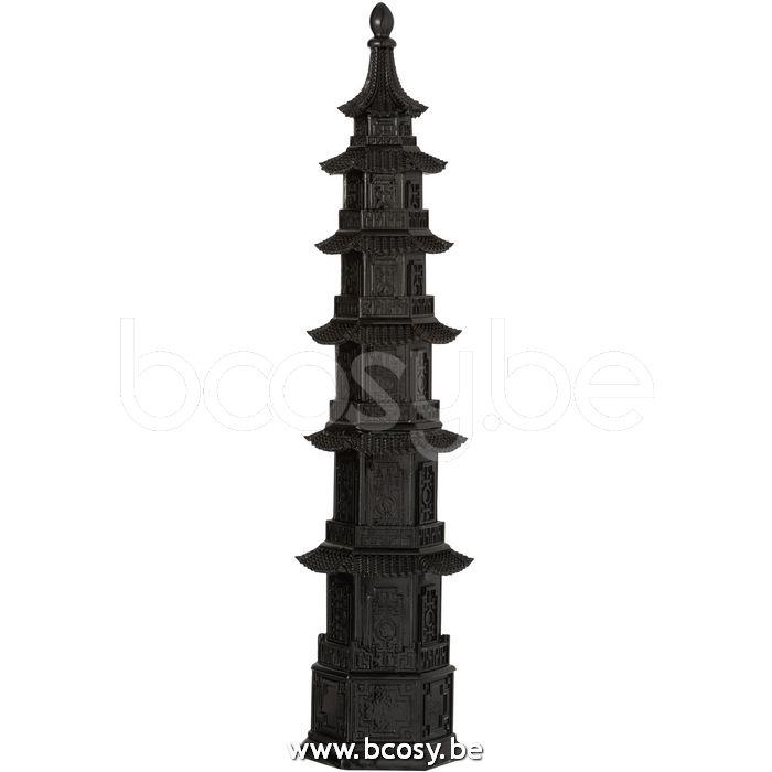 J-Line Oosterse Tempel Poly Zwart Medium L14xB14xH58