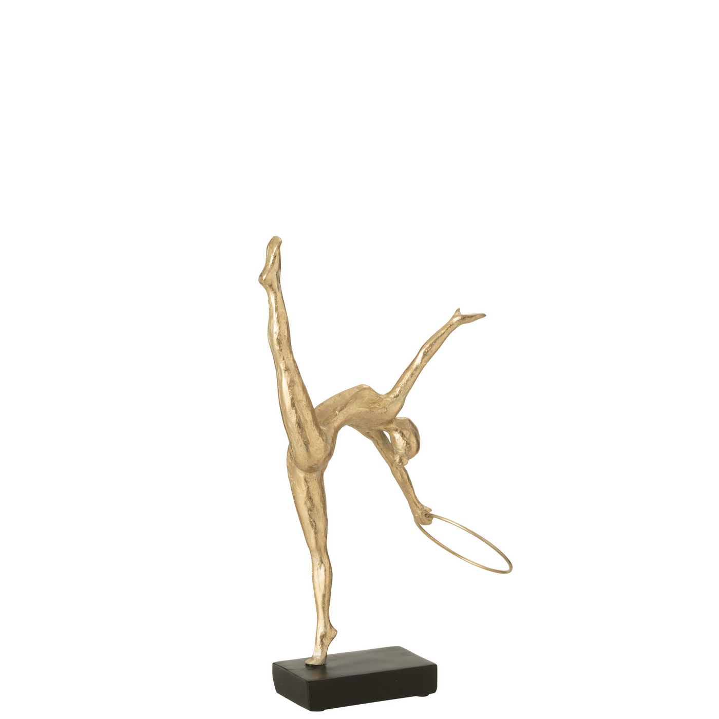 J-Line Gymnast Op Voet Hoepel Hars Zwart-Goudkleurig L22xB11xH36 cm