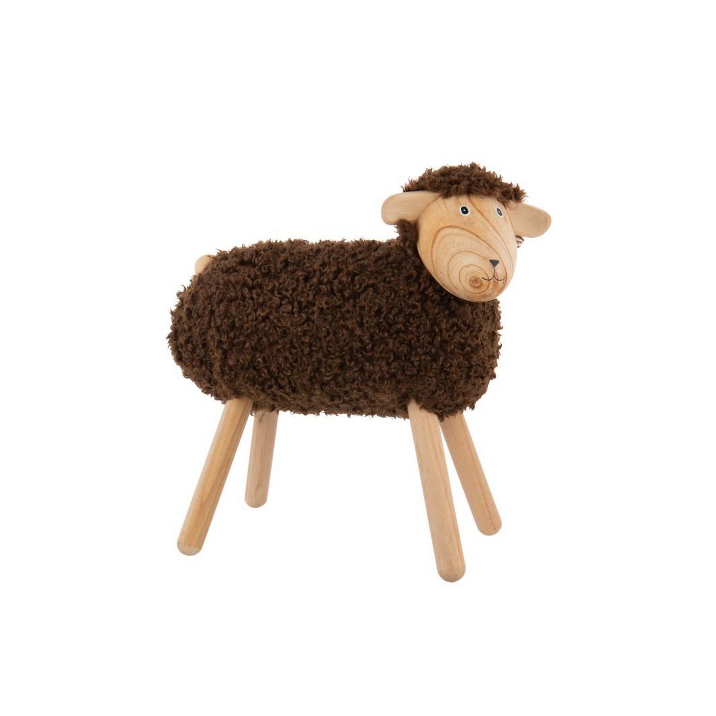 J-Line by Jolipa Mouton Décoratif Bois De Hêtre/Fausse Fourrure Naturel/Marron Foncé Large
