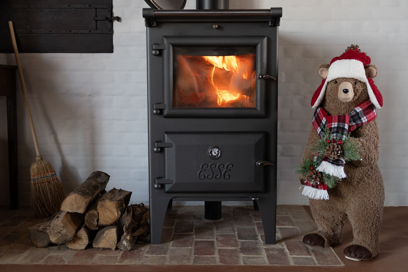 J Line Bear +Beanie Polyester Brown/Christmas Red