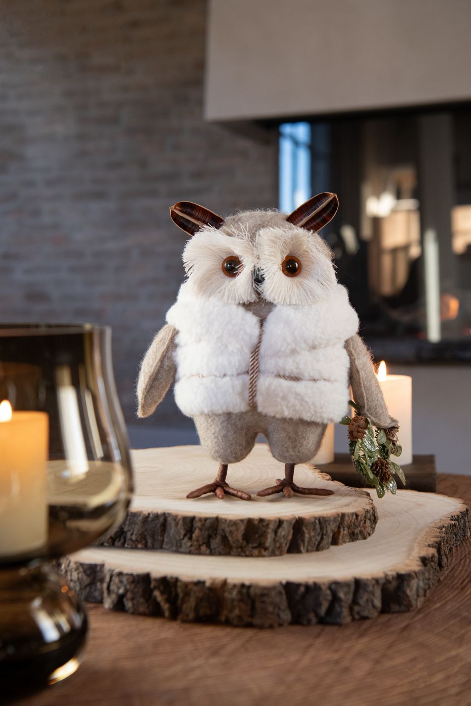 J-Line Uil-Jas Polyester Beige-Wit Small L17xB12xH24 cm
