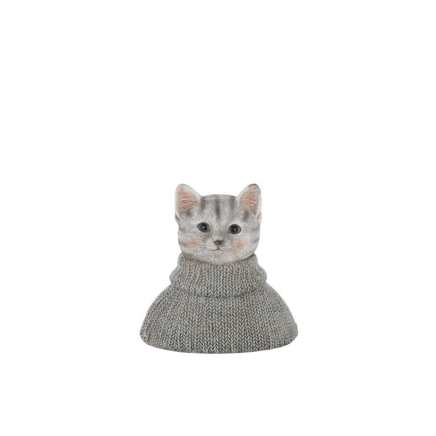 J-Line Kat Bust Sweater Polyresin Grijsblauw-Wit L14xB9xH15 cm