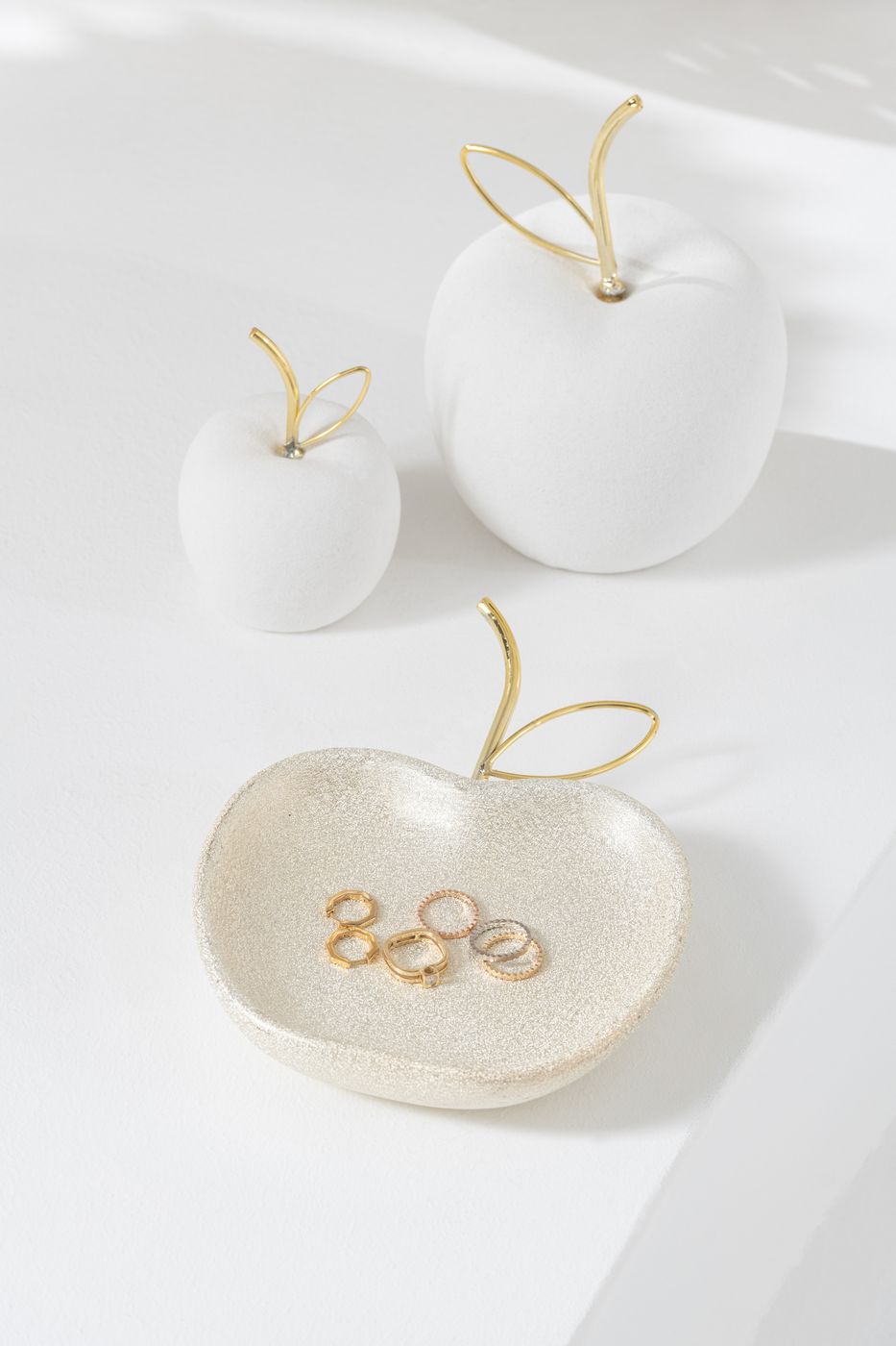 Jline Set Van 3 Appel Zand Afwerking Porselein Wit Goudkleurig