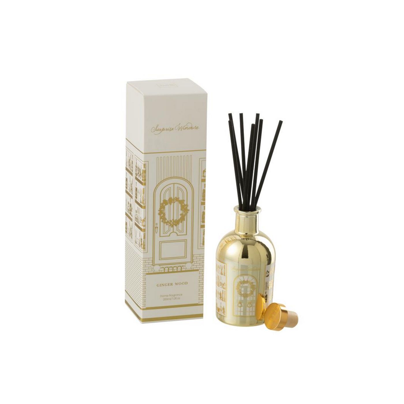 J-Line by Jolipa Diffuseur À Batons Surprise Window Huile Parfumée Blanc/Doré
