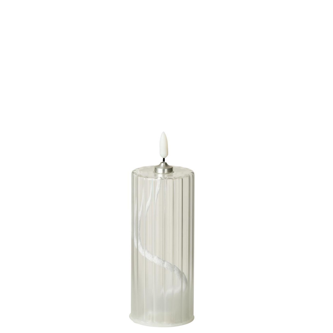J-Line Led Kaars Strepen Glas Transparant Medium L6xB6xH14 cm