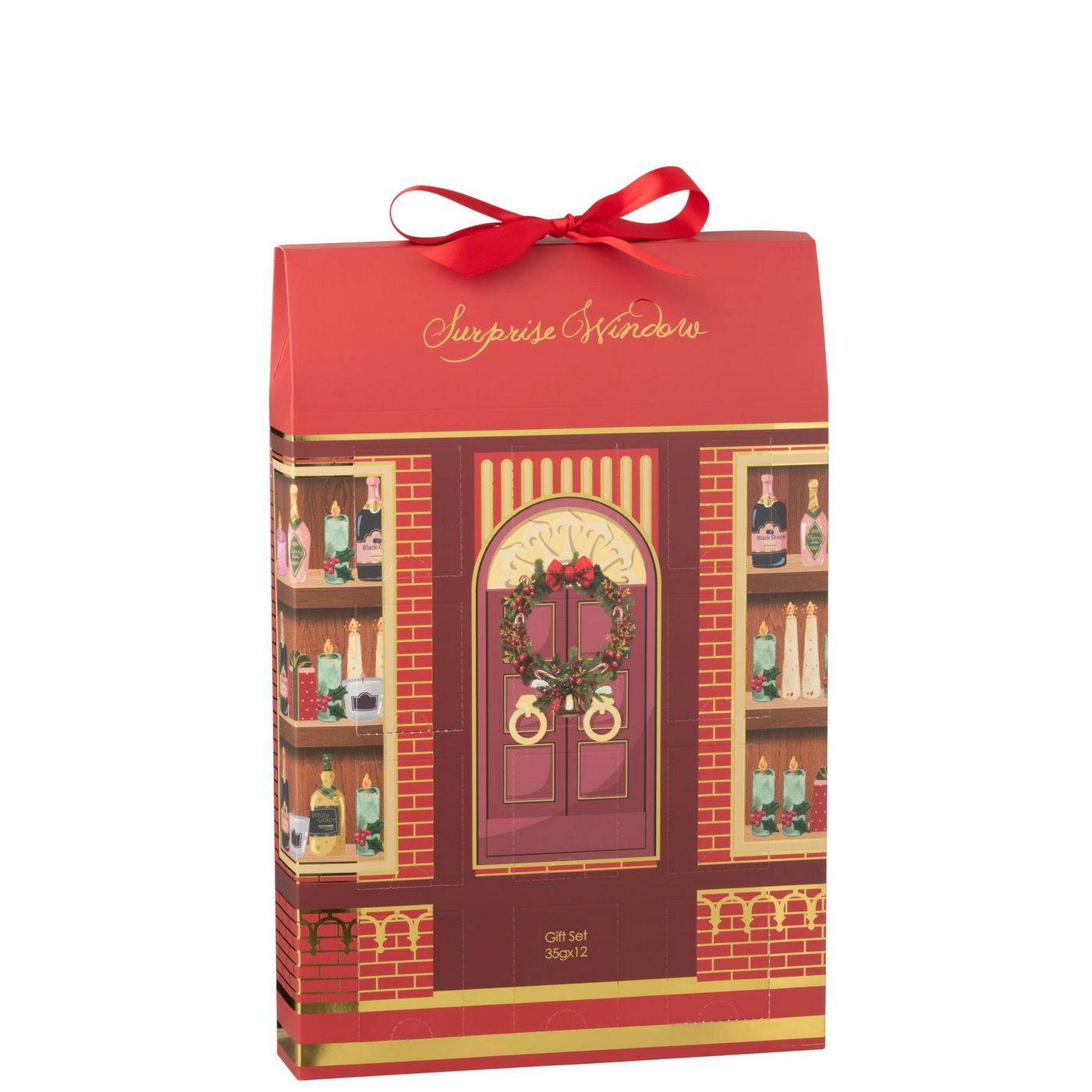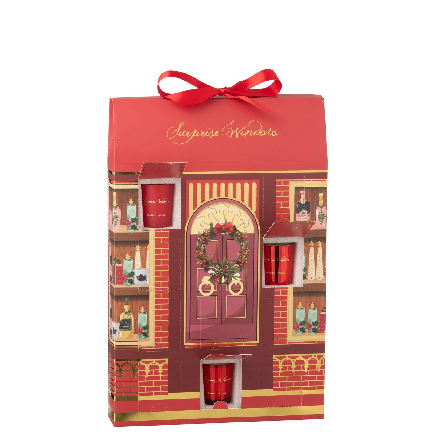 J-Line Geurkaars 12 Candles Surprise Window Was Koraalrood-Meerkleurig L27xB6xH41 cm