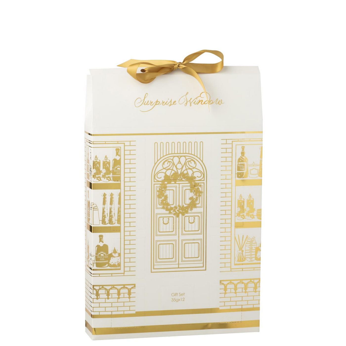J-Line Geurkaars 12 Candles Surprise Window Was Goudkleurig-Wit L27xB6xH41 cm