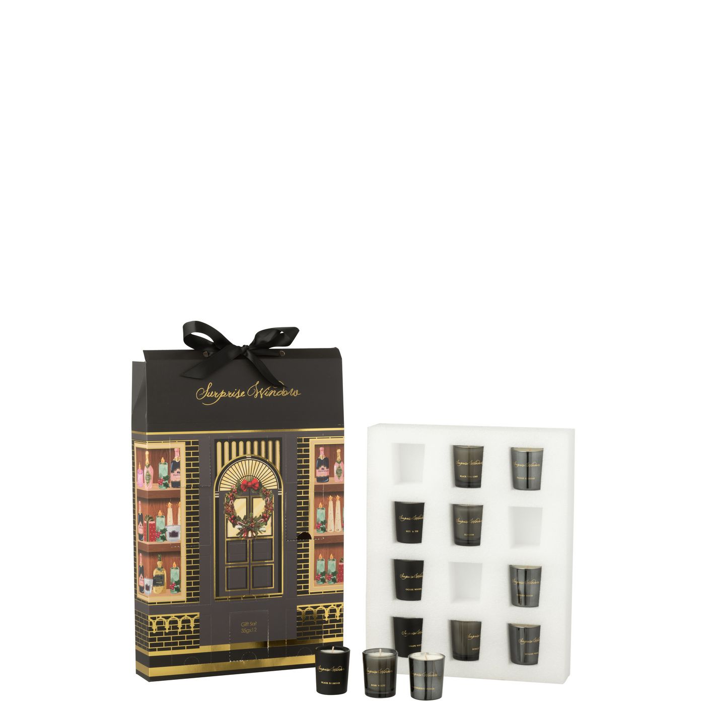 J-Line by Jolipa Bougie Parfumée 12 Candles Surprise Window Cire Noir/Multicolore