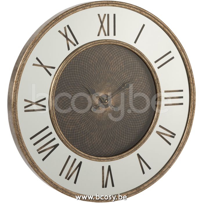 J-Line by Jolipa Horloge Chiffres Romains Led Miroir Mdf Antique Or Large