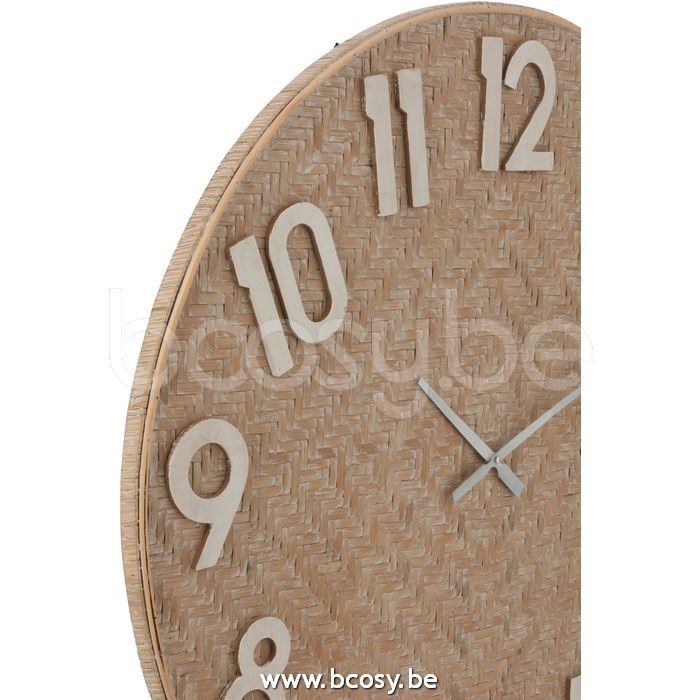 J-Line by Jolipa Horloge Rotin Rond White Wash Naturel/Blanc Large