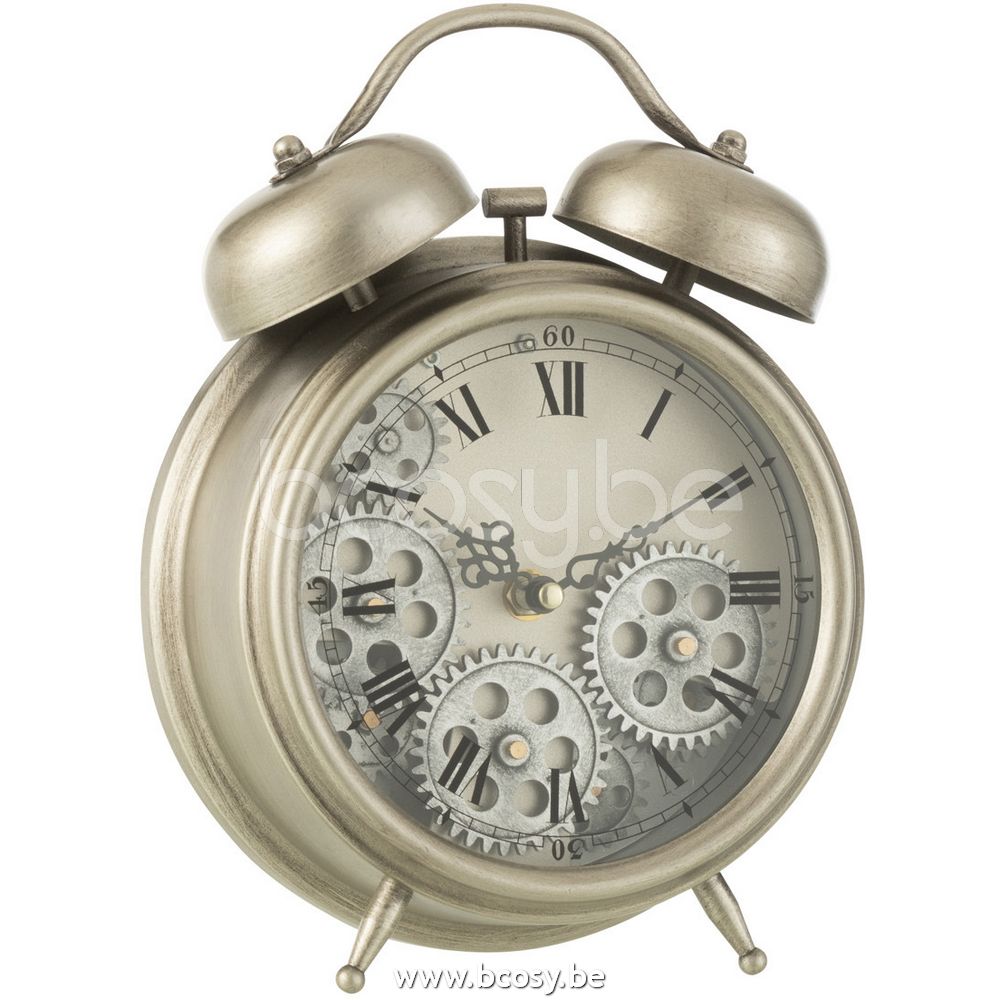 Jline Klok Wekker Romeinse Cijfers Tandwielen Metaal Zilver Small