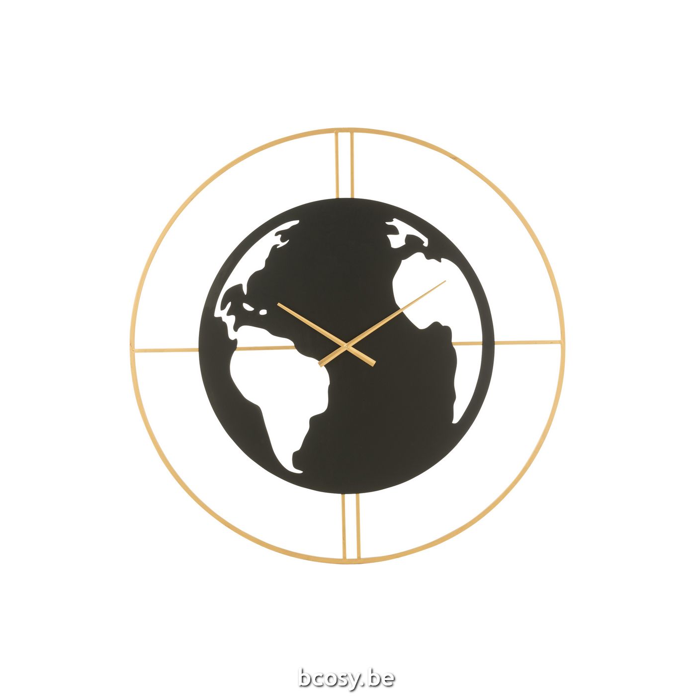 J-Line by Jolipa Horloge Carte Du Monde Trous Metal Noir/Or Large