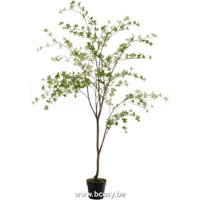 J-Line Plant Fijne Blaadjes Plastiek Groen-Zwart L100xB80xH198
