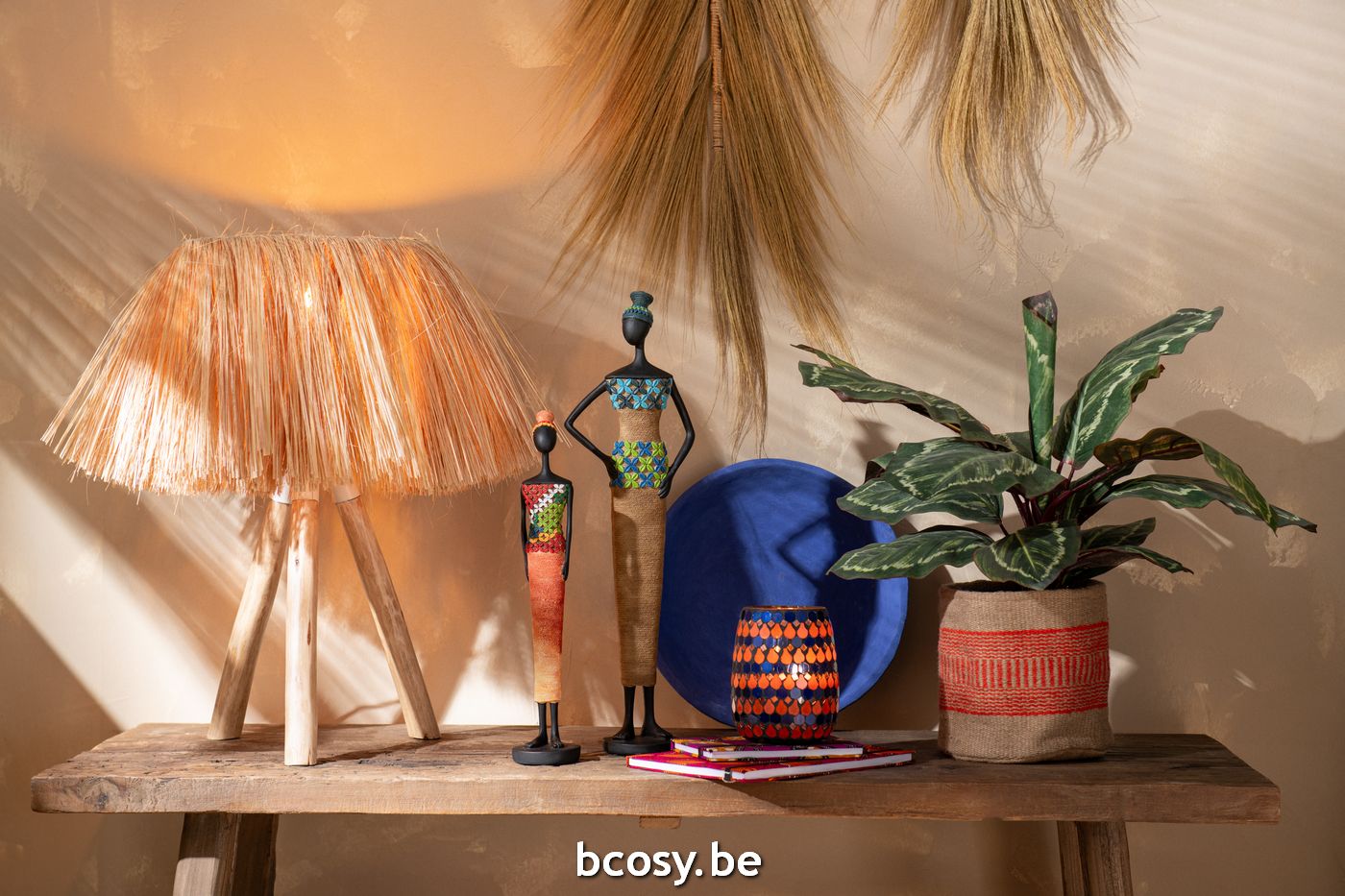 Jline Mand Rond Band Jute Naturel Oranje Large Assortiment Van 2