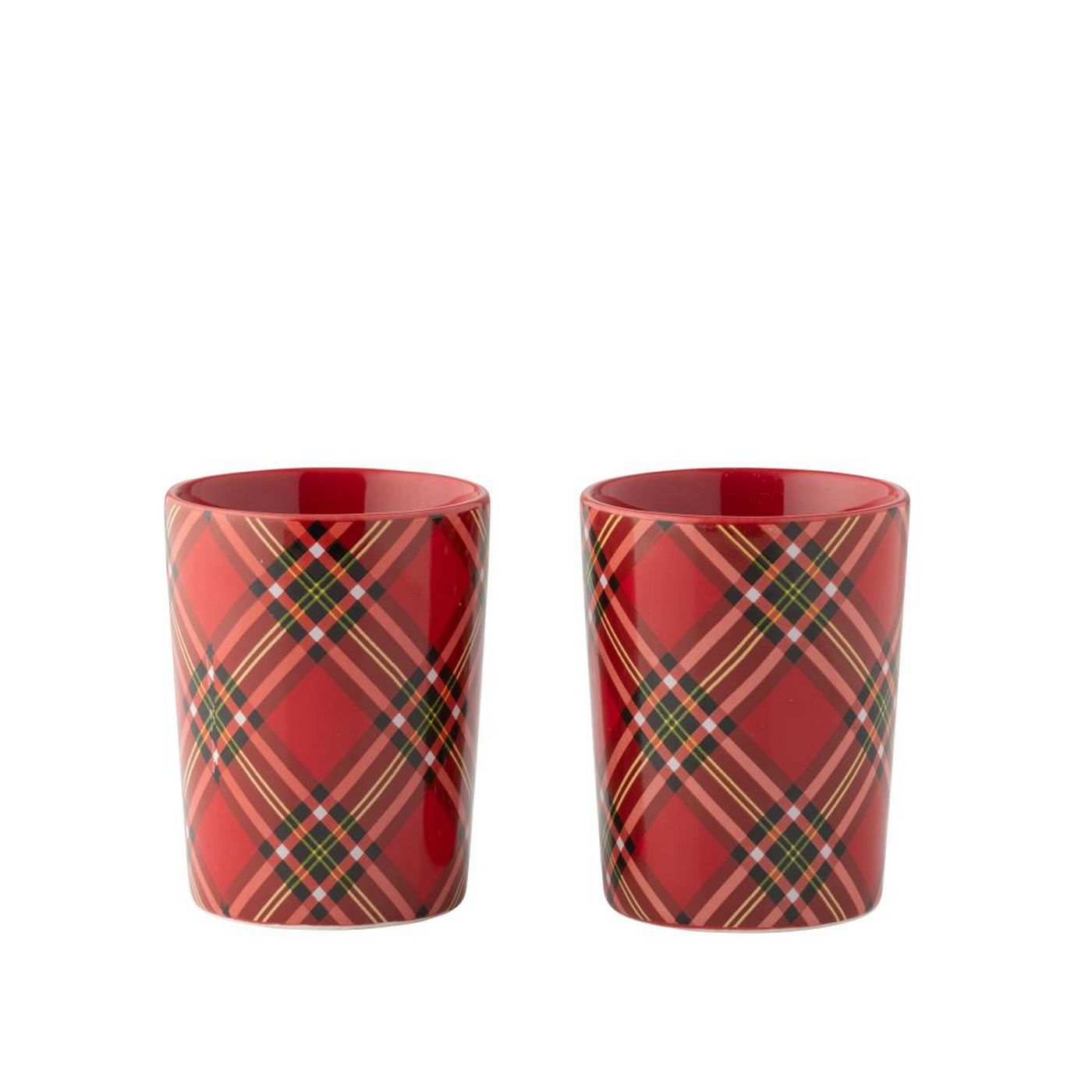 J-Line by Jolipa Boite De 2 Tasse Plaid Céramique Rouge