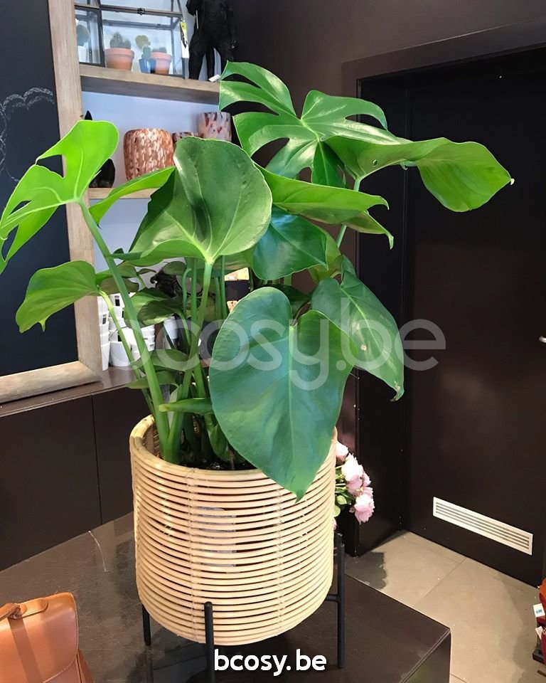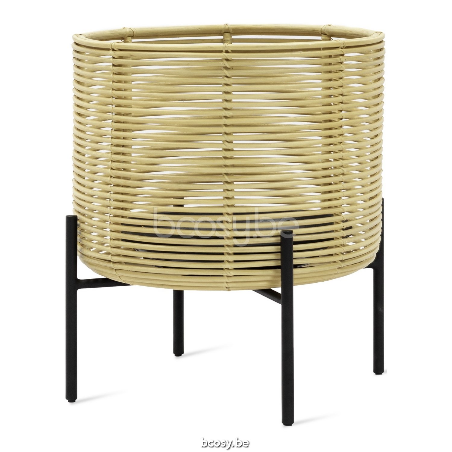 Materiaal: Zwart gepoedercoat stalen frame met natuurlijke rotan plantenmand. Inclusief plastic schotel.