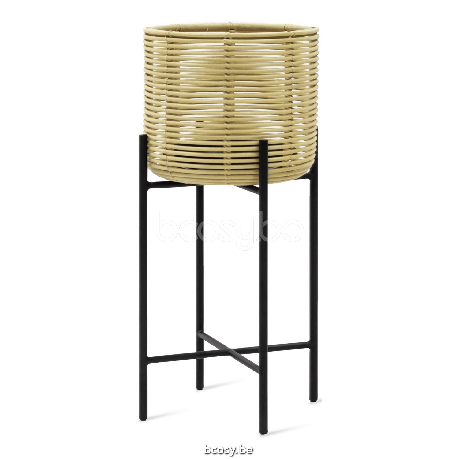Materiaal: Zwart gepoedercoat stalen frame met natuurlijke rotan plantenmand. Inclusief plastic schotel.