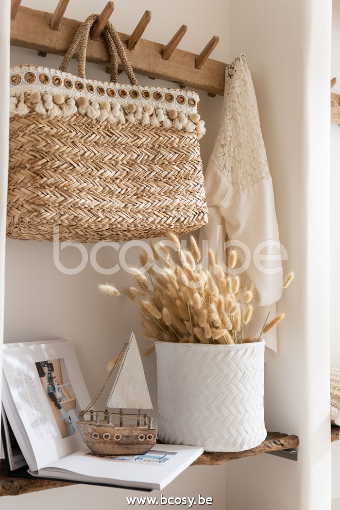 J-Line by Jolipa Cache Pot Imitation Tissage Ciment Blanc Large