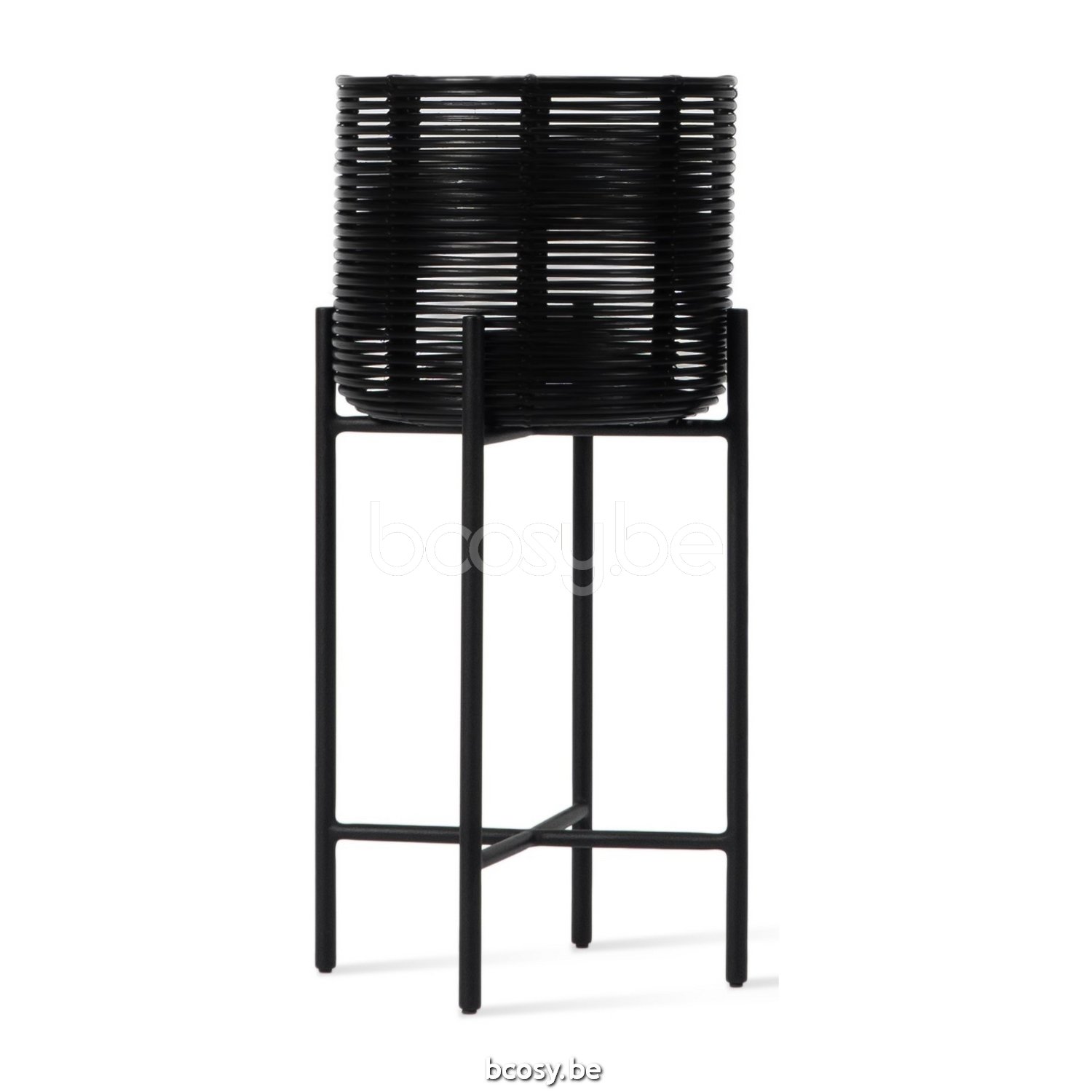 Materiaal: Zwart gepoedercoat stalen frame met HDPE rieten plantenmand. Plastic schotel inbegrepen.