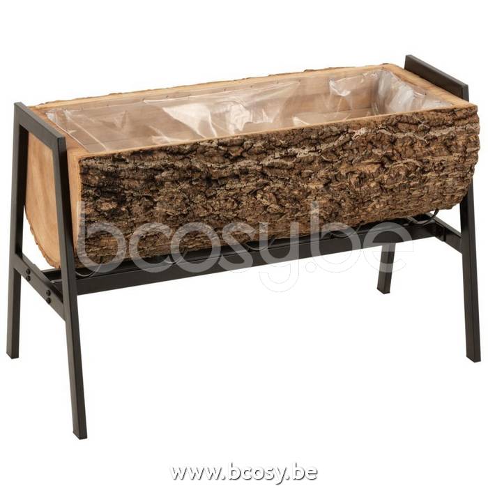 Jline Bloempot Op Voet Halve Stam Paulownia Hout Ijzer Naturel Zwart Large