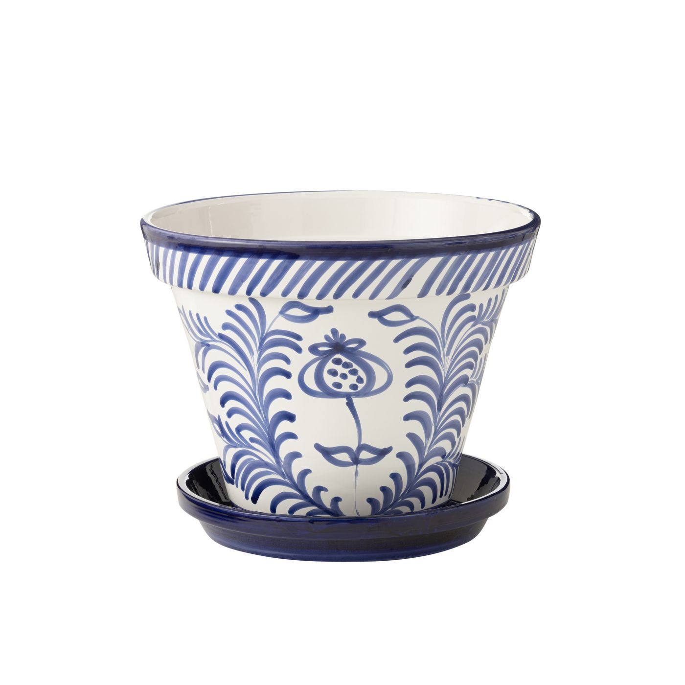 J Line Flowerpot+Plate Granada Handmade/Handpainted Ceramic Cobalto Blue/White Extra Large