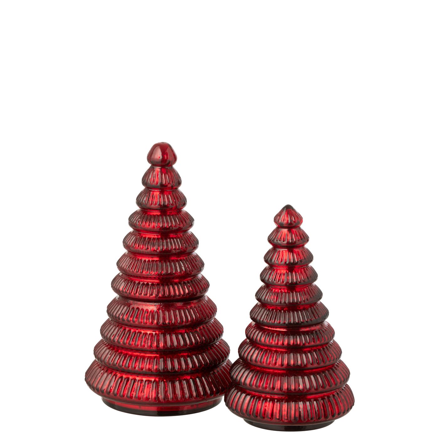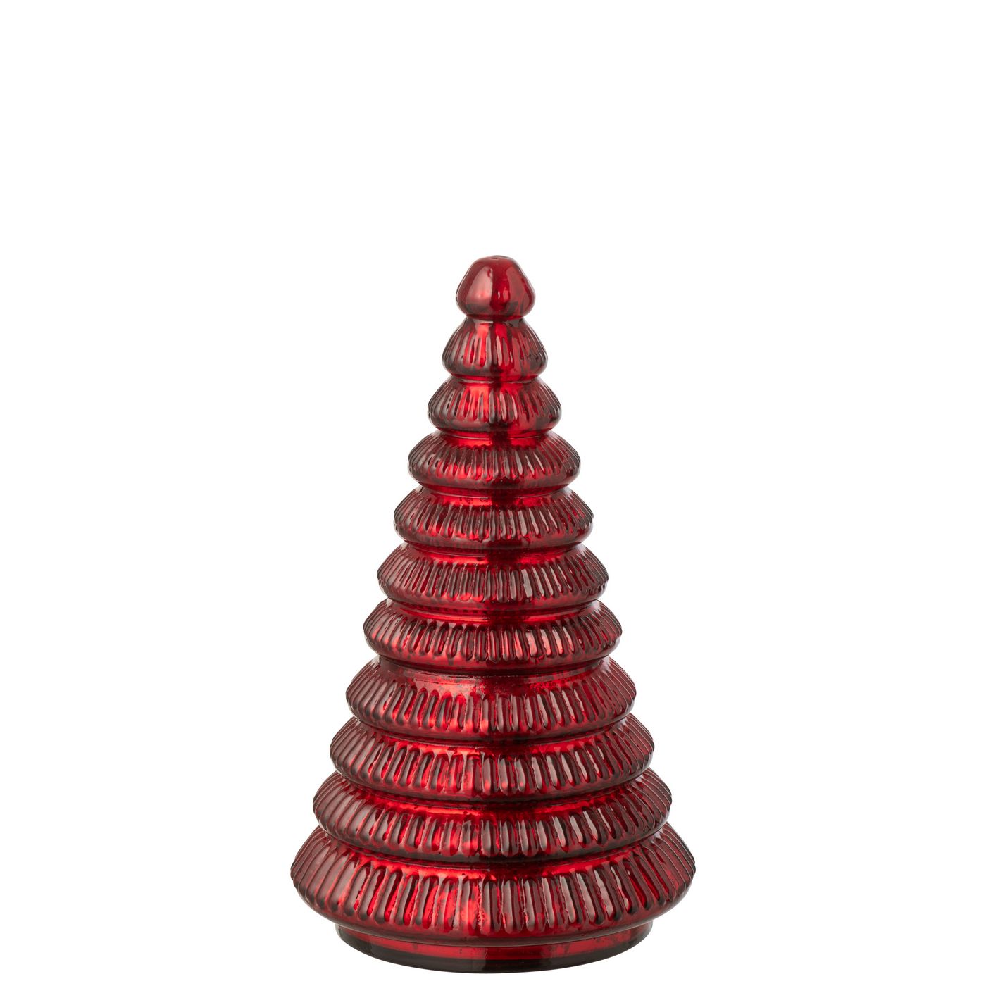 J-Line Geurkaars Boom Geribbeld Glas Kerstrood Large L13xB13xH22 cm