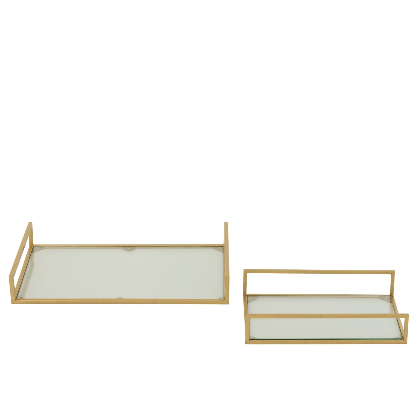 J Line Set Of 2 Decorative Tray Iron/Glass Gold Colored