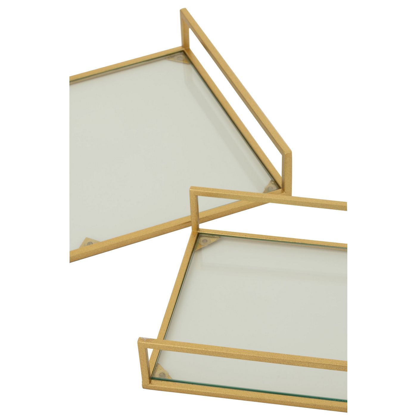 J-Line Set Van 2 Decoratief Plateau Ijzer-Glas Goudkleurig L50xB35xH7 cm
