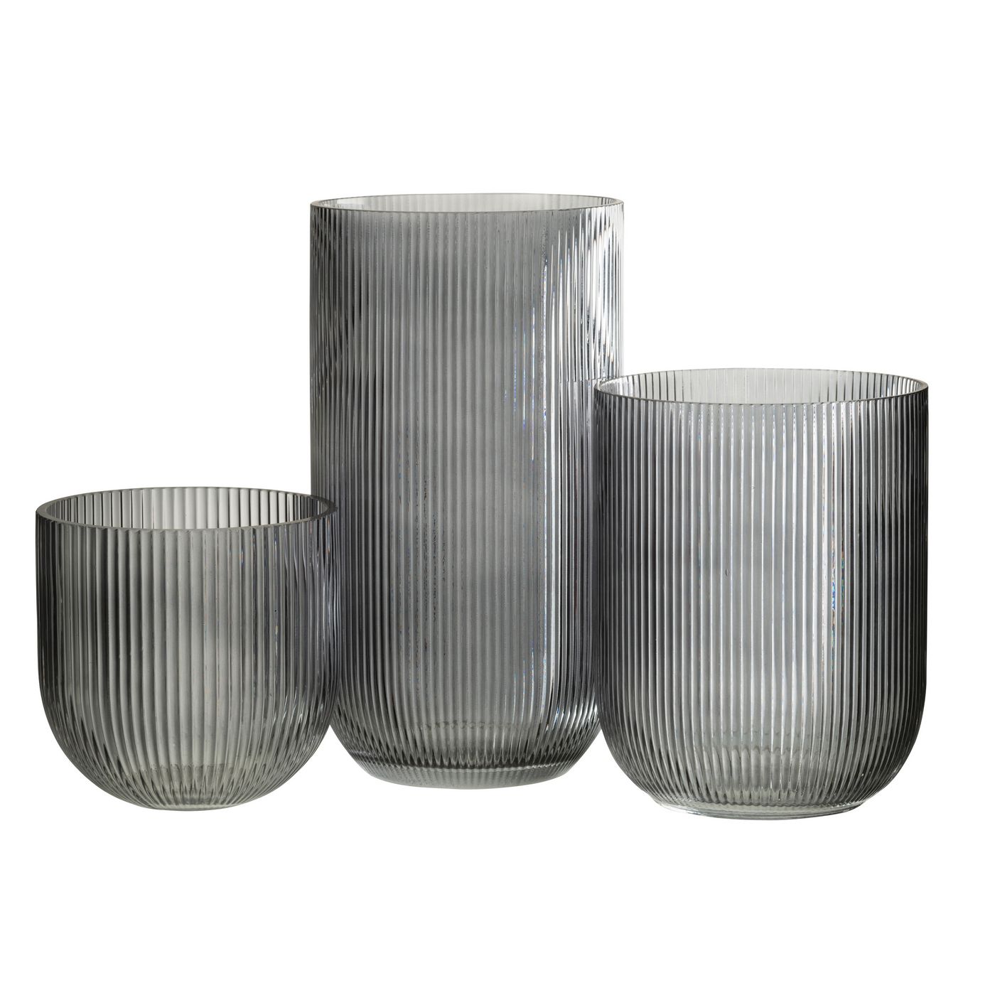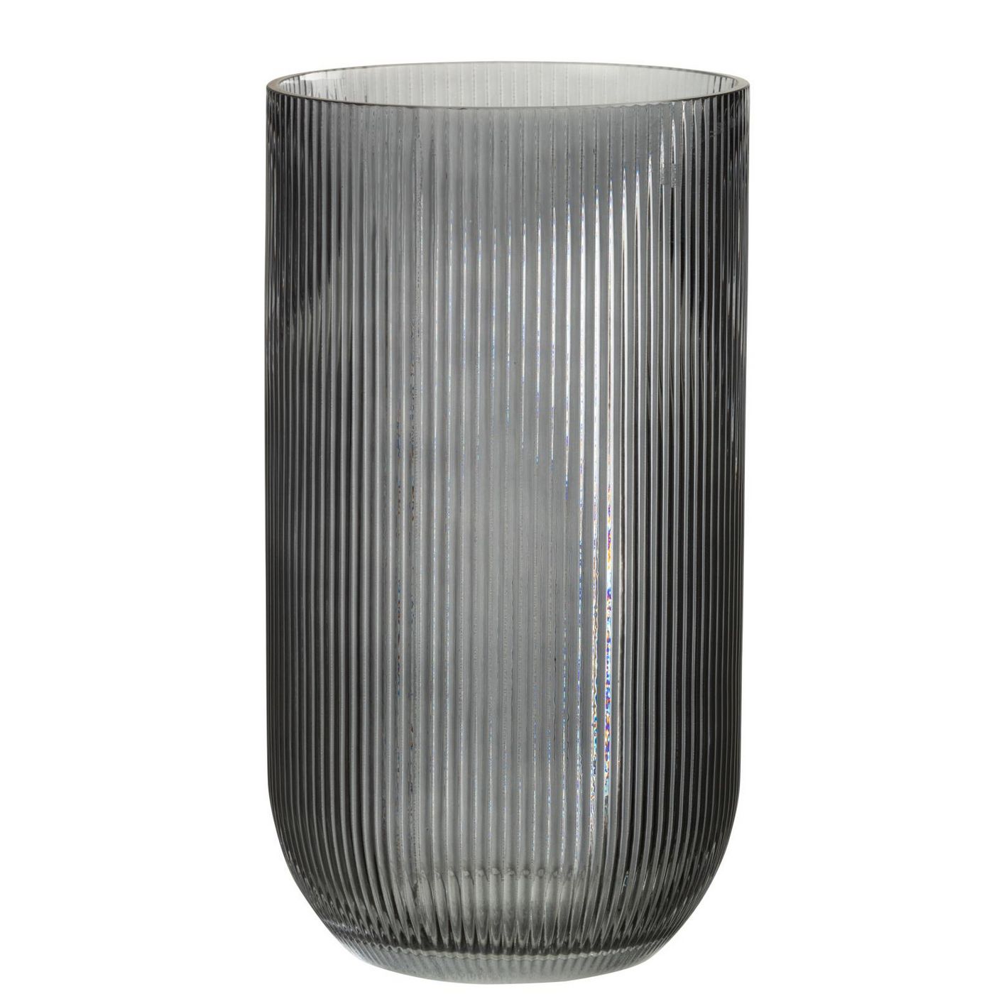 J-Line Vaas Gestreept Glas Zwart Large L17xB17xH30 cm