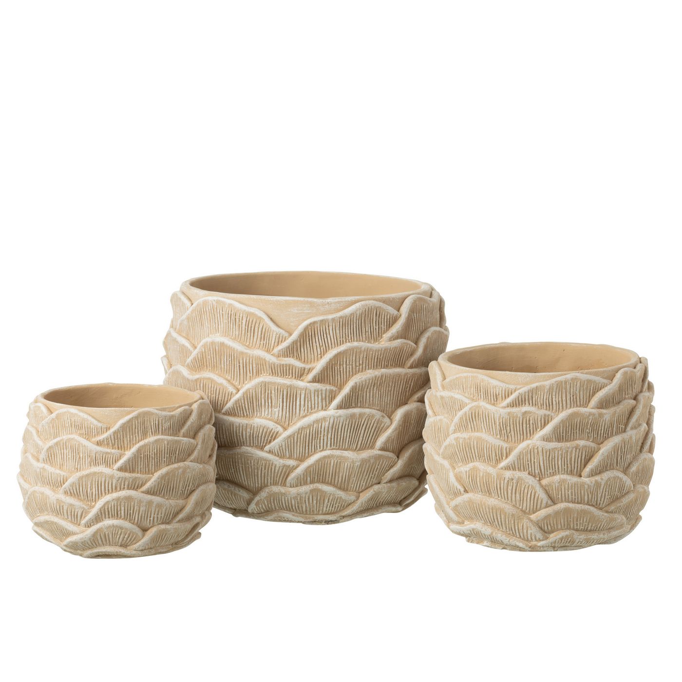 J-Line by Jolipa Cachepot Rond Relief Ciment Beige Large
