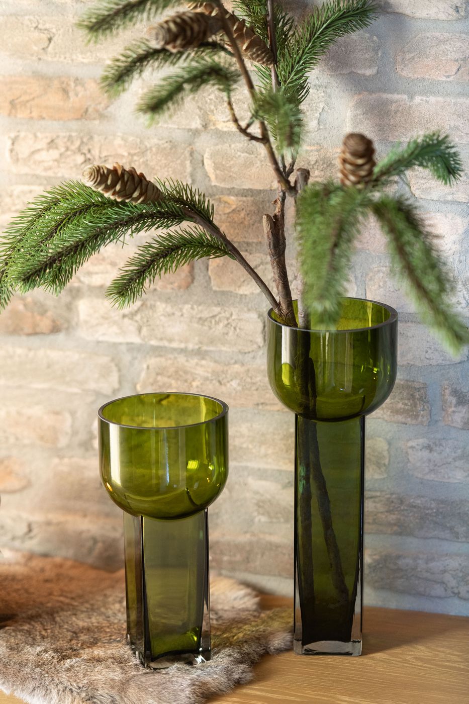 J-Line Vaas Carol Glas Olijfgroen Medium L13xB13xH26 cm