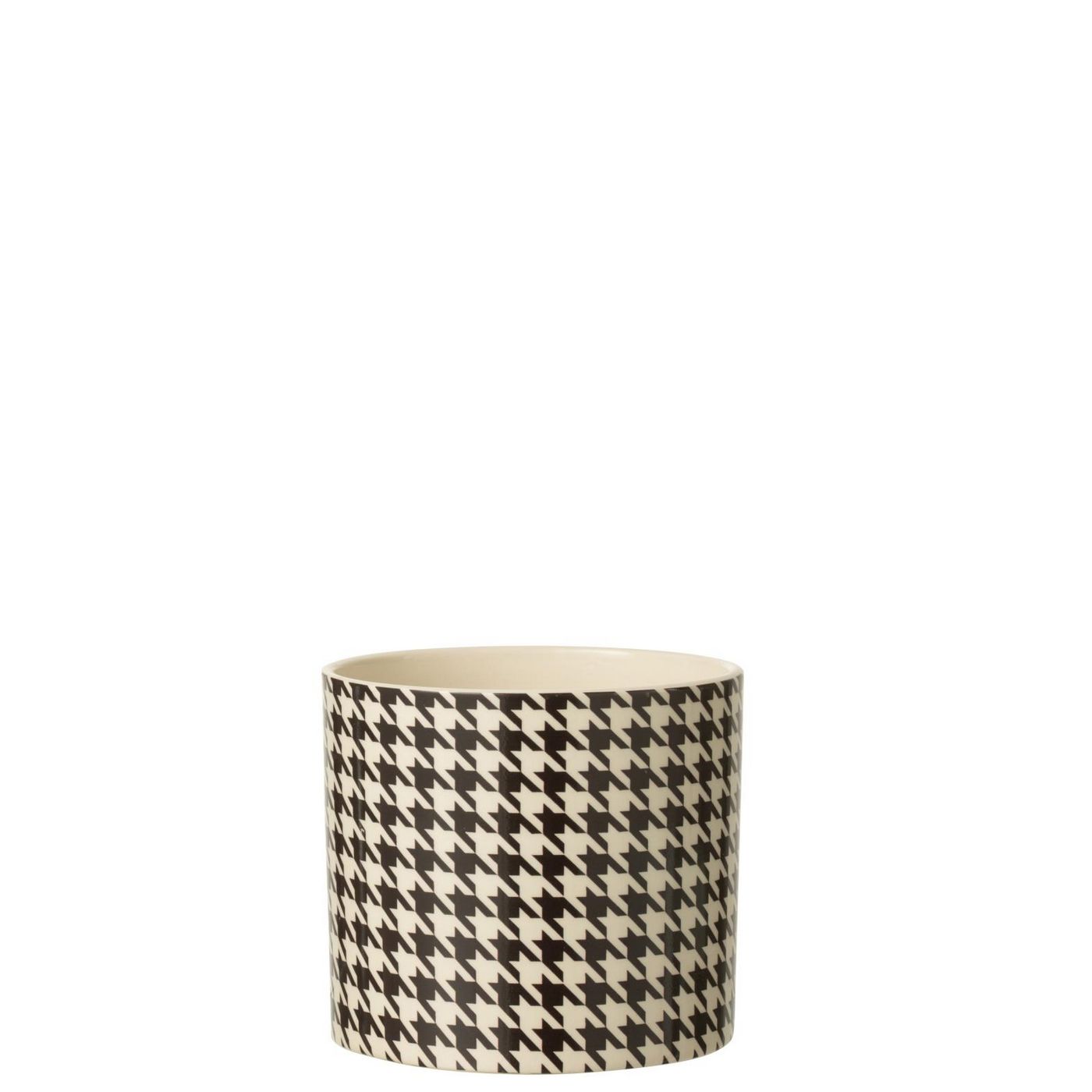 Jline Bloempot Rond Pied De Poule Margo Keramiek Wit Zwart Medium