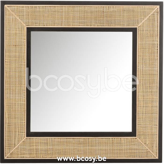 J-Line Spiegel Molly Exotiek Hout-Rotan Zwart Small L80xB80xH3 cm