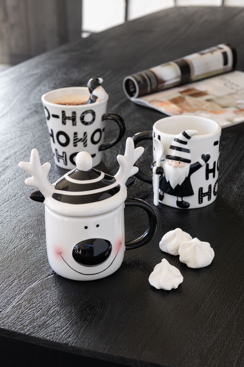 J-Line by Jolipa Mug + Couvercle Renne Dolomite Blanc/Noir