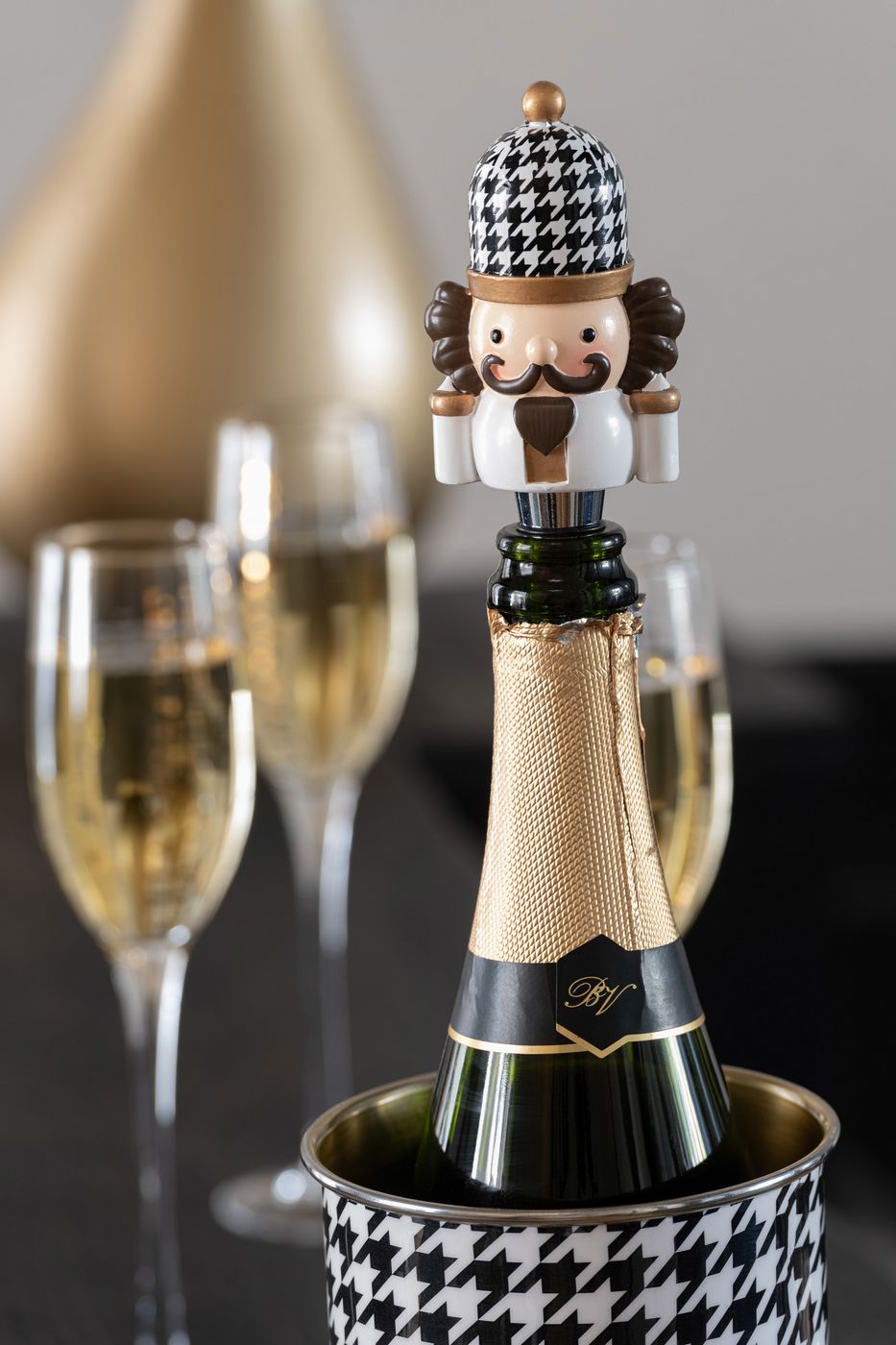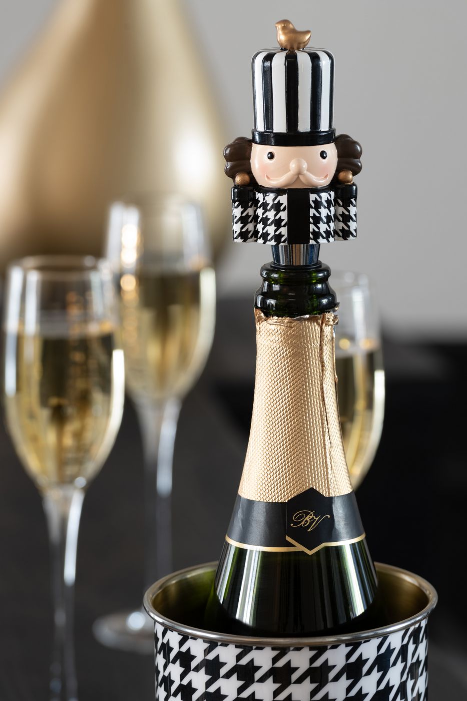 J-Line Doos Van 3 Flessenstop Pied-De-Poule Kalk Zwart-Wit L12xB10xH30 cm