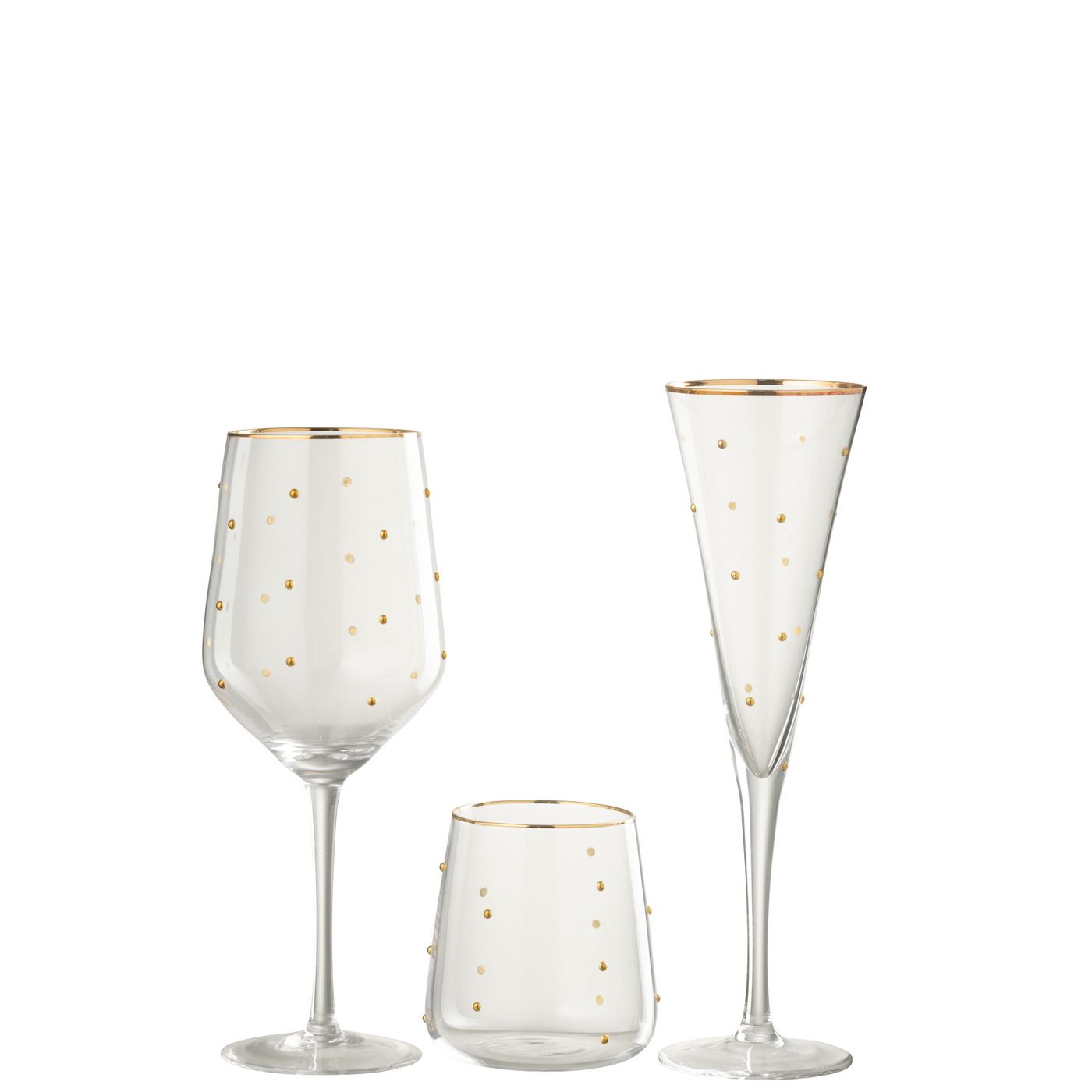 J Line Champagnerglas Punkte Glas Transparent/Goldfarben