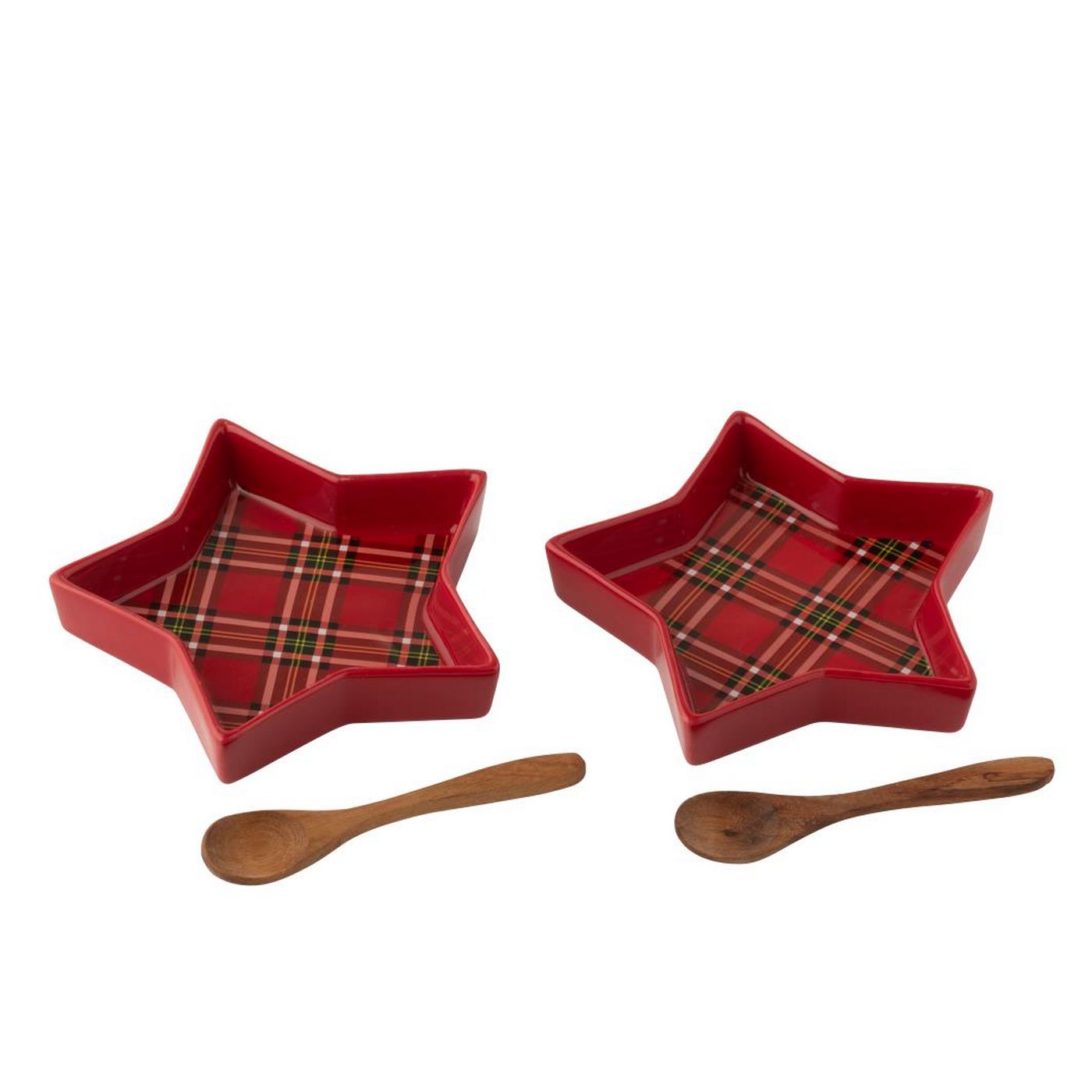 J Line Caja De 2 Plato Plaid Estrella Cerámica Rojo