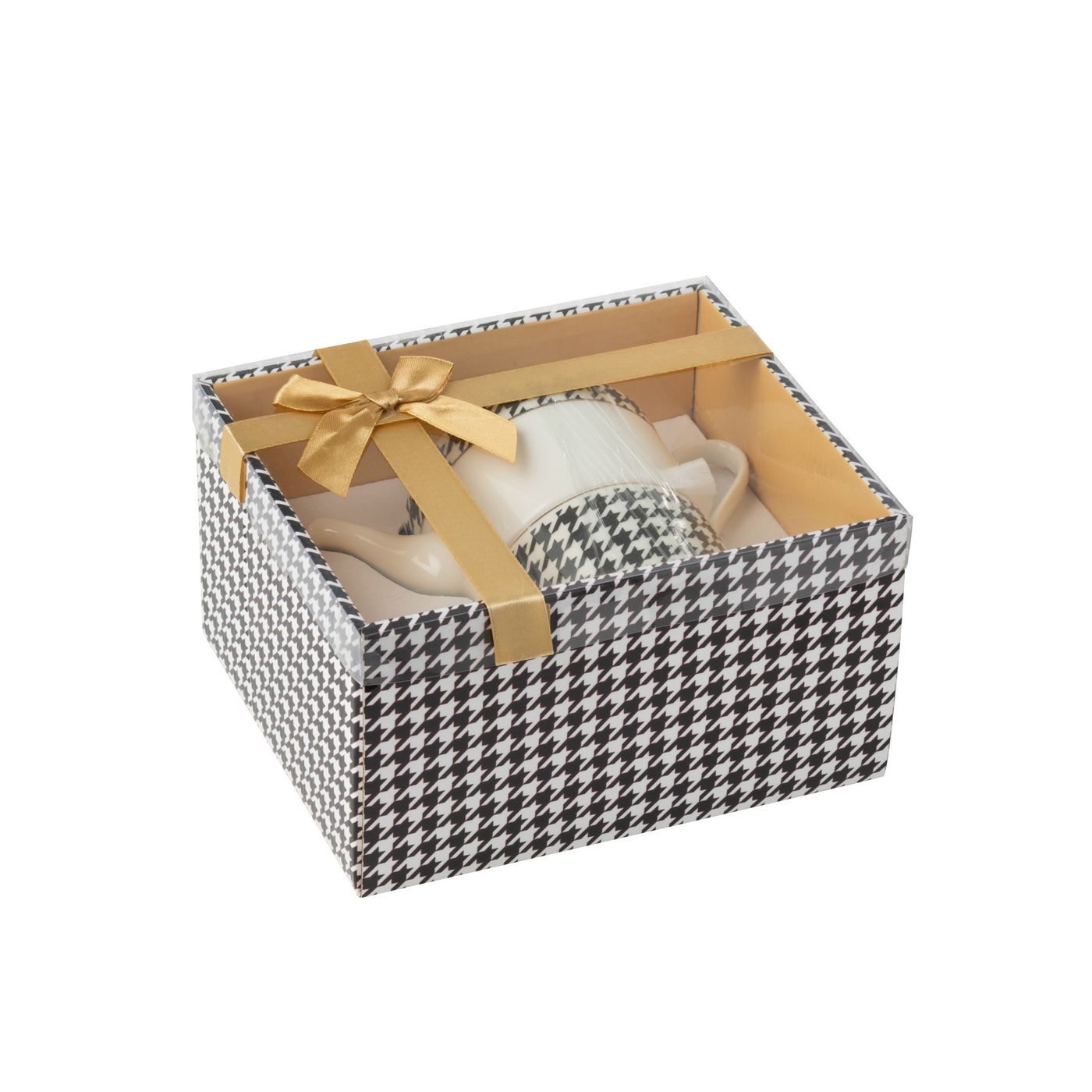 J-Line by Jolipa Boite De 1 Théière Pied De Poule Porcelaine Blanc/Noir
