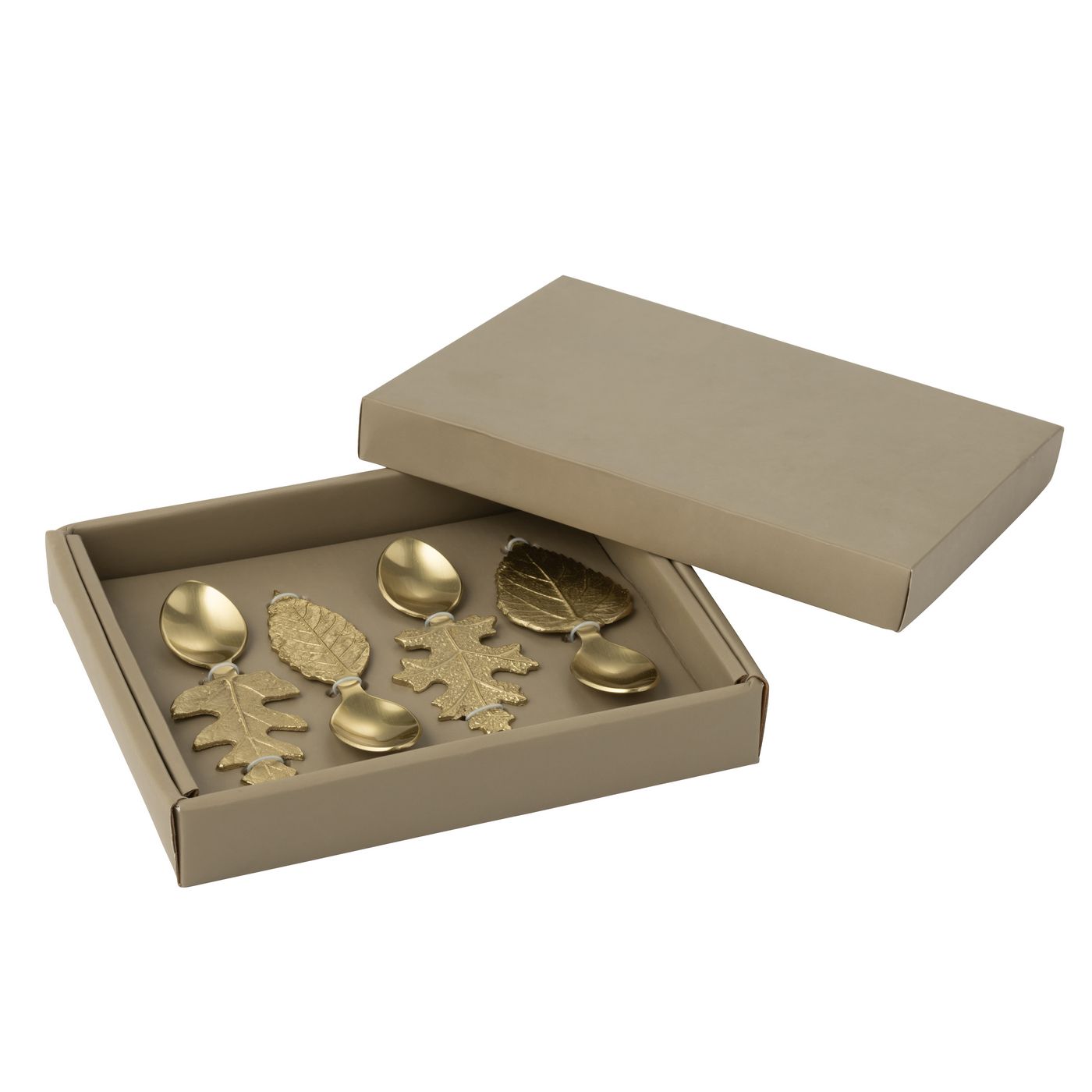 J-Line Doos Van 4 Lepel Bladeren Roestvrij Staal Goudkleurig L13xB2 cm