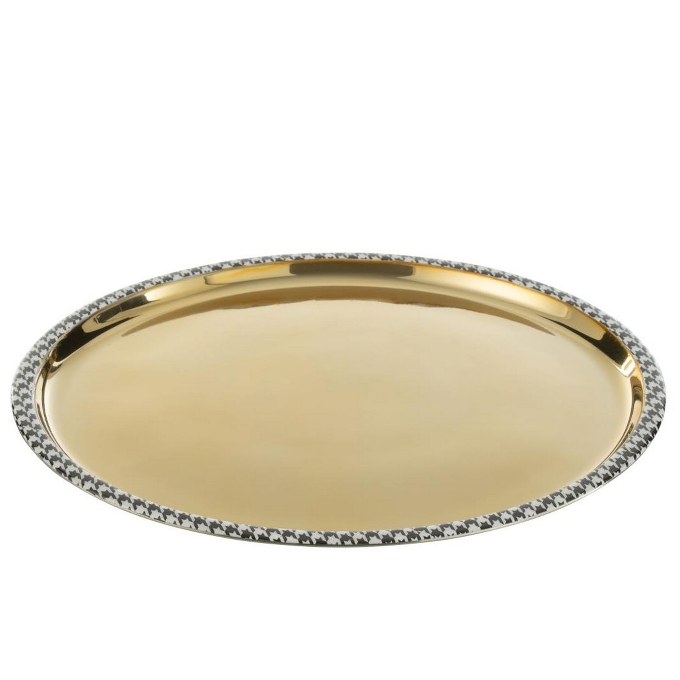 J Line Tablett Rund Pied-De-Poule Rostfreier Stahl Goldfarben
