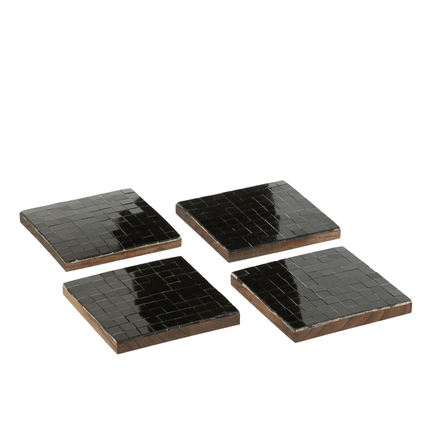 J-Line Doos Van 4 Onderzetter Mozaïek Acaciahout Zwart L10xB10 cm