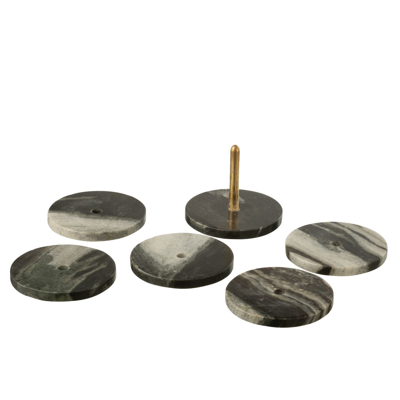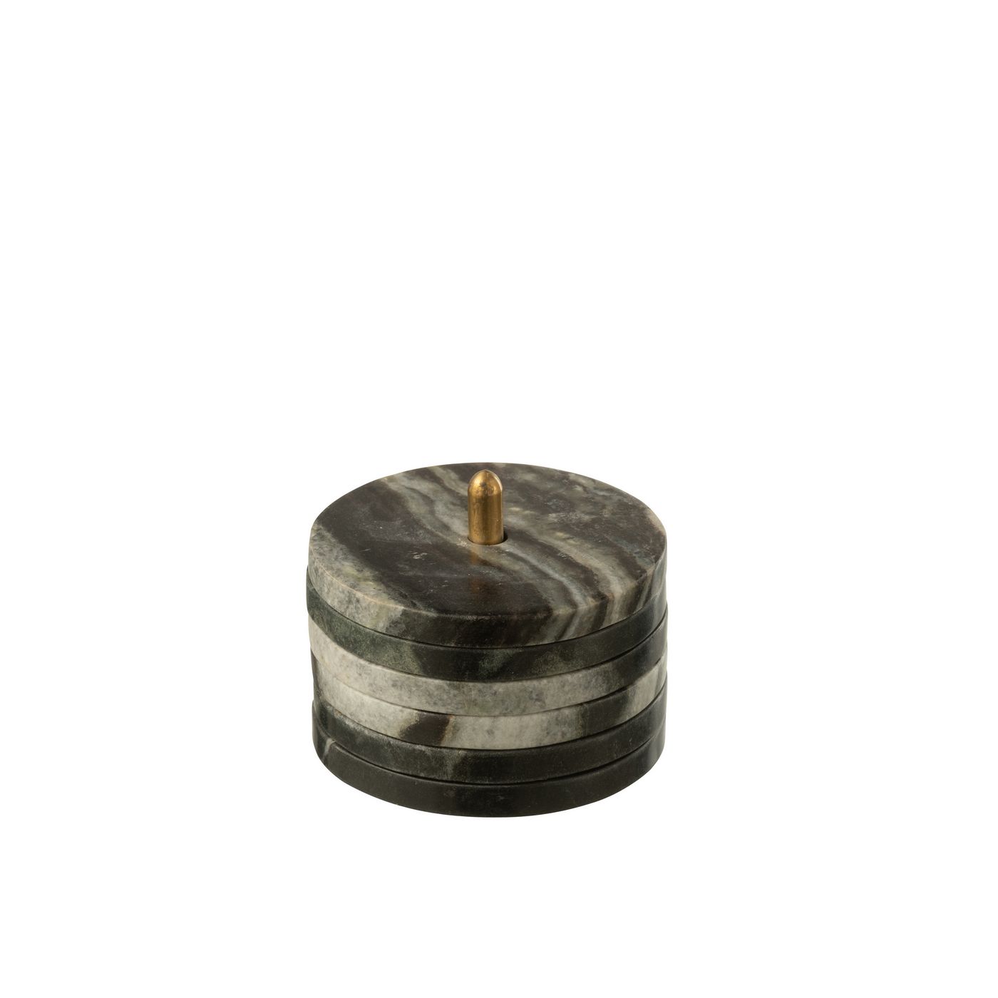 J-Line Doos Van 6 Onderzetter Rond Marmer Zwart-Lichtgrijs L10xB10xH12 cm